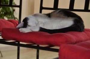 . Er ist sehr gerne auf dem Balkon, wie auch seine Brüder und wenn er etwas entdeckt das ihn fasziniert muss er dies laut miauend gleich seinen Besitzern erzählen. Auch bringt er Stöckchen oder andere Sachen, die er auf dem Balkon findet, gleich zu seinen Besitzern
