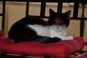 Wenn seine Besitzerin heim kommt, hört man ihn ganz laut miauen wie wenn er sagen wollte „komm schnell rein“ und alle drei empfangen sie an der Haustüre.