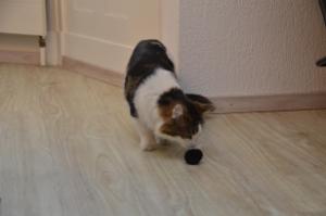 Als ich eintrat standen die 3 Buben da. Hattori Hanzo wie vermutet mit etwas Abstand, dennoch neugierig und interessiert. Master Yoda liess sich gleich streicheln und schnupperte alles ab und Herr Möbius brauchte ein paar Minuten bis er sich streicheln liess. Die mitgebrachten Spielsachen waren sehr interessant und egal ob Mäuschen, Bällchen oder Stinkie, jeder der drei fand etwas um damit zu spielen und sie wechselten mit den Spielsachen ab. Die Angel war anfangs sehr interessant und ich brachte Master Yoda dazu in die Luft zu springen oder mit seinen Pfötchen nach ihr zu greifen. Einzig Hattori sah man an, dass er zwar gerne möchte, dennoch aber lieber auf Abstand blieb