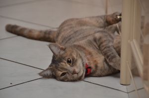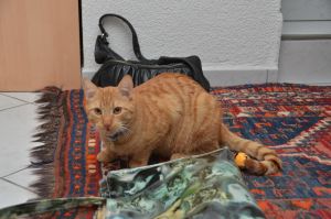Als wir Eintraten stand Khan beim Esstisch und schaute uns verwundert an. Er reagierte im ersten Moment unsicher und wusste nicht wie ihm geschah. Lily lag beim Wohnzimmertisch und schaute uns mit grossen Augen an. Sie traute der Situation gar nicht und dachte wohl, „ich verhalte mich mal abwartend, dann sehen die mich nicht“