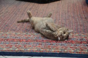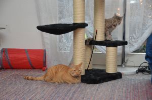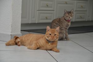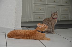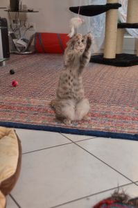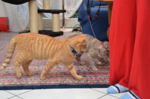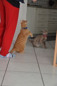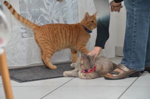 Die Beiden verstehen sich super und toben quer durchs Haus. Sie kuscheln zusammen, verprügeln sich frei nach dem Motto – was sich liebt das neckt sich. Was Lily weniger an Kraft hat, macht sie mit Kleverness wett und zeigt Khan locker wo es lang geht
