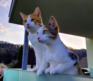 Ob die zwei bald Freigang geniessen werden, ist noch nicht sicher, auch wenn die Möglichkeit besteht, ein Katzentürchen und eine Leiter zu montieren. Die Besitzer sind sich noch etwas unsicher, ob sie das Risiko eingehen möchten. Bis jetzt scheint den beiden der schöne Balkon mit der Aussicht jedenfalls noch voll zu genügen.