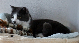 Ein anderes Hobby von Neo ist schlafen, ja er verschläft zeitweise ganze Tage und ist erst am Abend wieder wach. Und obwohl das Haus zweistöckig ist, ist Neo meist nur im unteren Stock anzutreffen. Er liebt es auch sich beim gemütlichen Fernsehschauen auf die Beine seiner Liebsten zu legen und sie schnurrend durch den Abend zu begleiten