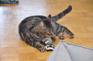 Wir liessen uns dadurch nicht stören und so erfuhr ich so einige Geschichten über den süssen Kater. Er liebt es sich mit Wasser zu beschäftigen und daher stellt ihm seine Besitzerin immer wieder mal eine Wasserschüssel hin und Sammy stellt dann mit Wonne seine Vorderpfötchen hinein. Wasser fasziniert ihn sehr und er hat keine Angst davor.