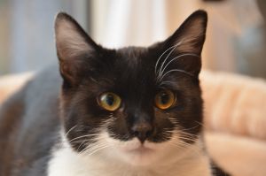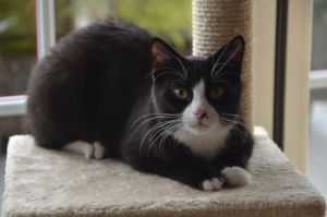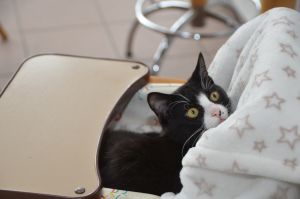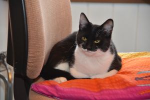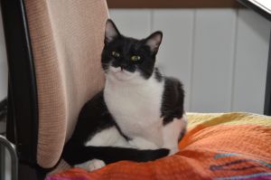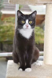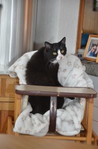 Kimi ist gross geworden. Er ist gesund und munter und liebt es vom Wasserhahn zu trinken und im gesicherten Fenster den Vögeln zuzuschauen. Kimi fand seine Plätzchen im Kinderstühlchen oder im Körbchen. Er ist ein toller Kater und einfach ein Schatz.