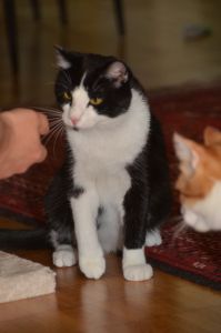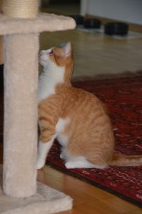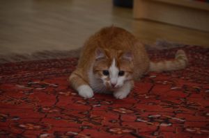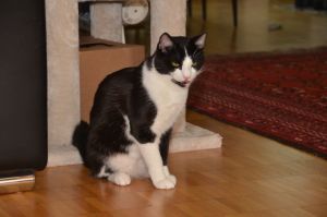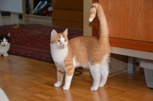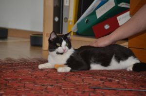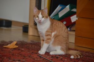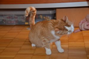 Benji ist der aktivere der beiden Kater und ist immer in Bewegung. Sein Lieblingsspielzeug ist ein Stäbchen ohne Federn, denn diese sind schon lange weg gespielt. Sobald das Stäbchen geholt wird steht Benji auch schon da und freut sich auf die Spielstunde.