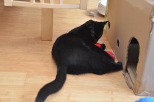 Sie interessierte sich für alles mitgebrachte, spielte mit dem Stinkie und liess sich knuddeln. Sie hat den Pflanzen in der Wohnung beigebracht, dass diese fehl am Platz sind. Nahm sie anfangs die Erde auseinander, so zeigte sie mit der Zeit dass auch das Grün nicht passt. Zwar leben die Pflanzen noch, aber wir denken – nicht mehr lange!