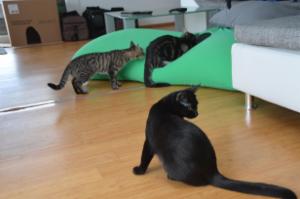 Die drei haben sich gefunden und die drei werden ihre Besitzer sicher noch lange auf Trab halten. Aber alle sind glücklich dabei und wir duften uns heute davon überzeugen. Ein Paradies für Katzen – danke an euch, dass ihr dies ermöglicht habt!