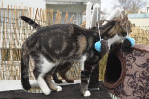 Alamea ist da anders. Sie ist diejenige die lieber gefordert wird, ihre Leckerlis aus dem Fummelbrett raus sucht und immer wieder interessantes rausfinden will. Sie ist diejenige der zwei die hinterfragt wo Yoshi einfach drauf los geht! Sie ist eine überlegende kleine Katzendame, die ihren eigenen Kopf hat. Sie ist auch diejenige des Duos, die locker vom Hocker mit sich selbst beschäftigt ist und mal ohne Yoshi auskommt, obwohl sie den Kontakt zu dem frechen Schatz genau so sucht.