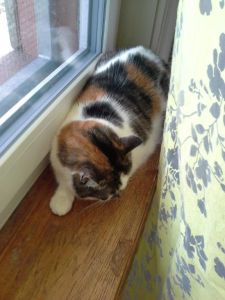 . Ich kann meine Morgenstunden nur kurz auf meinem Turm geniessen und den Rest des Tages liege ich meist faul herum und mag auch die Spieleinheiten, die ich immer genossen habe, nicht ausleben. Einzig das Bürsten geniesse ich in vollen Zügen.