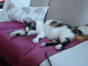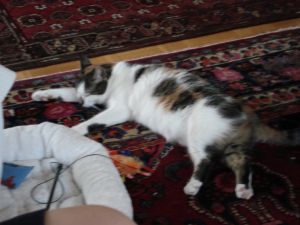 Cindy ist bei bester Gesundheit. Während unserem Besuch hat sie sich zum Schlafen zurückgezogen, bis wir wieder aufbrachen, dann kam sie nochmals um Tschüüs zu sagen und zu zeigen, dass sie ihre Familie wieder für sich haben will. Sie dachte wohl, dass wir jetzt genug Zeit zum Quatschen gehabt haben.