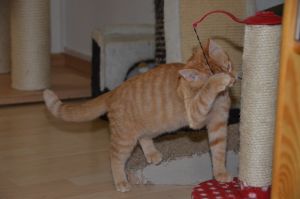 Auch er ist ein guter Jäger, doch bringt er seine Beute meist noch lebend nach Hause. Man erzählte uns, dass er die Mäuse liebevoll im Maul herum trägt und eher Freund statt Feind ist