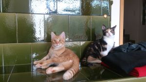 Mit den Neuzugängen klappt es gut und auch mit ihnen tobe ich durchs Wohnzimmer, doch sie dürfen noch nicht in die ganze Wohnung so wie ich, deshalb schleiche ich mich ab und zu davon und springe über die Kindertüre zu den anderen Katzen, da ich gross genug bin um diese Hürde zu nehmen