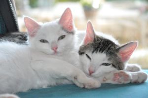 Die beiden Katzen verstehen sich super und hängen sehr aneinander. Die beiden sind ein richtiges Dreamteam und putzen sich gegenseitig, kuscheln zusammen und toben gemeinsam durch die Wohnung. Beide dürfen nach draussen, was sie sehr geniessen und als mal ein Hund zu Besuch war, zeigte sich Timo mutig und blieb, doch sein Schwesterchen zog es vor sich nach draussen zu verdünnisieren.