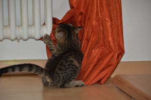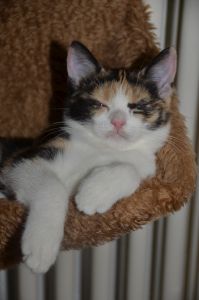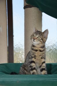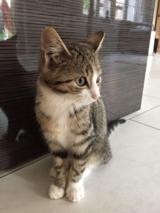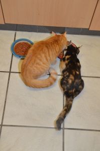 Bibi hat sich zu einer wunderschönen Kätzin entwickelt und hat ein sehr weiches Fell. Ihre Kopfform zieht einem in den Bann und sie ist ein Traumbüsi geworden. Bibi ist kerngesund und munter. Ihre Besitzer erzählten uns, dass sie eine grossartige Jägerin ist, die ihre Beute meist schon tot heim bringt. Sie spielt dann noch lange im Garten damit und hat ihren Spass daran. Die Gegend um das Haus ist für Katzen ein Paradies mit dem Wald in der Nähe und den Wiesen, wo sie auf die Jagd gehen kann. Dort möchte man Katze sein! Wir mussten schmunzeln als uns ihre Besitzer erzählten, dass die Kleine laut Schnarchen kann und das sie oft auf dem Kachelofen liegt, weil sie von dort aus den besten Überblick hat. Mit Moritz versteht sie sich super und man dürfte die beiden nie trennen, denn sie hängen aneinander. Ein richtiges Dreamteam, wie uns ihre Besitzer versicherten .