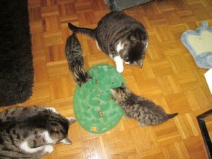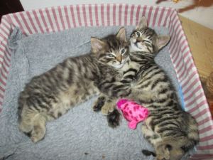 Mit so vielen Katzenkumpels aufzuwachsen ist super. Wir können gegenseitig unsere Kräfte messen, miteinander spielen, uns von hinten anspringen und uns gegenseitig putzen und warm geben.