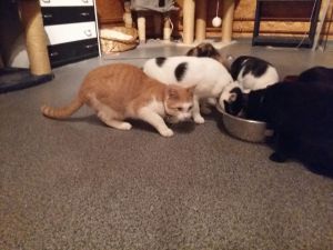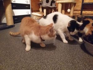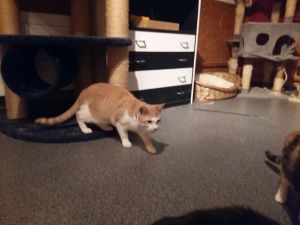 Abends legt Garfield los und jagt Bällchen durch die Wohnung, welche er in hohem Bogen herum wirft. Er versteht sich auch super mit den anderen Katzen im Haushalt und ist ihnen gegenüber sehr sozial.