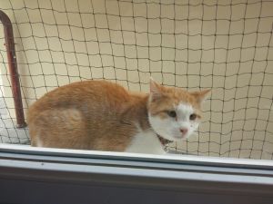Seit seine Besitzer den Wintergarten gesichert haben geniesst er die Sonne auf der Fensterbank, wo er sich genüsslich räkeln kann. Auch sitzt er gerne an einem der Fenster in der Wohnung haben mir seine Besitzer erzählt.