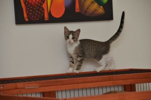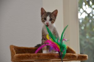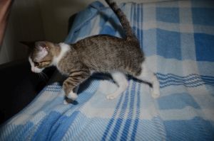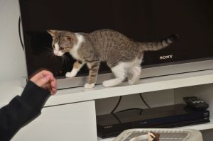 Eigentlich wurde Chelsea als Kumpelchen für Tornado geholt, der seit dem Tod seines besten Freundes Rambo ruhig geworden war und so erhoffte sich Chantal, dass die Kleine den Kater aus der Reserve lockt, denn beide haben sehr viel Temperament. Auch wünschte sie sich, dass Tornado dadurch ein wenig Ruhe von den anderen im Haushalt lebenden Katzen bekommt und diese Rechnung ging auf, denn Chelsea spielt den „Buffer“ zwischen den dreien und so ist wirklich viel mehr Harmonie in der Katzengruppe eingekehrt.