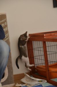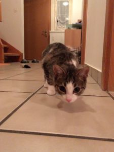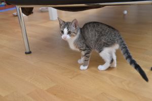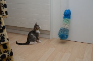 Mein Pflegemami holte auch gleich meine Spielsachen hervor und los ging das herum springen und Bällchen jagen. Mein Pflegemami hat riesig Freude an mir und findet mich eine super coole Maus. Doch sagte auch sie, dass ich wirklich jemanden brauche, der sich mit mir beschäftigt, damit ich ein wenig ausgepowert werde. Es wäre zu schön, wenn ich einen Katzenkumpel im gleichen Alter bekomme, denn das täte mir sehr gut. Ich finde auch, dass ich einen Spiel- und Kuschelkumpel nötig habe.
