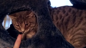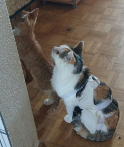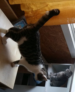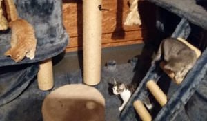 So berichtete man mir, dass Merry weiss wo die Wattestäbchen sind und diese für sich und Pippin klaut, um damit zu spielen. Auch Pippin ist ein Schlingel; er schob eines Tages den Einkaufswagen vor das Büchergestell und kletterte ganz oben hinauf, um die Spielsachen herunter zu werfen