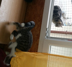 Auch finden beide den Vorhang im Wohnzimmer super und die Besitzerin wundert sich, dass dieser noch keinen Schaden genommen hat.