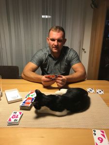 Auch spielt der süsse Kater gerne mit, wenn Karten gelegt werden. Er muss sowieso überall sein hübsches Näschen hinein halten und ist sehr wissbegierig. Oder er liegt in den lustigsten Positionen herum…