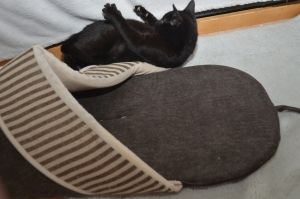Danach wurden wir geknuddelt und geschmust bis wir von selbst wieder von den Menschen geklettert sind. Auch die Spielstunde war toll, denn der neue Schuh, den wir bekommen haben finden wir echt lustig. Die eine von uns geht hinein und die andere springt von aussen darauf herum. Wenn es zu viel wird wechseln wir und so haben beide ihren Spass.