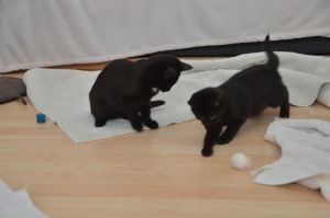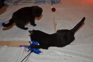 . Die beiden Jungkatzen spielen mit allem was sie finden.