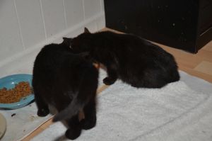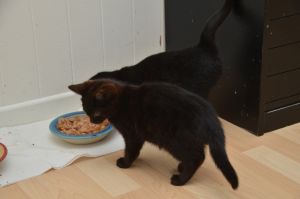 Ansonsten lieben wir es zu schmusen und ich springe jedesmal auf unsere Pflegemamis zu, wenn diese ins Zimmer kommen. Auch liebe ich es mehrmals vom Futternapf wegzulaufen, um mir mein Bäuchlein streicheln zu lassen, bevor ich wieder an ihn zurück kehre um weiter zu futtern. Dann lachen die Pflegemamis jedes Mal herzlich, denn das sieht wirklich lustig aus
