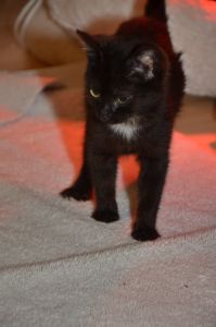 Sobald die Pflegemamis ins Zimmer kommen springen wir auf sie zu. Noël streicht dann immer um ihre Beine, sodass sie aufpassen müssen, damit sie nicht auf die Kleine drauf treten. Kaum setzen sie sich hin, sitzt Noël auch schon auf ihrem Schoss.