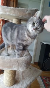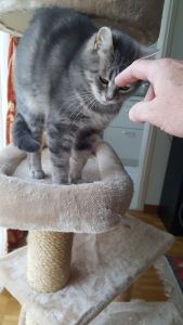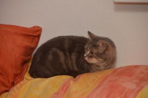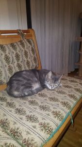 Silvie liebt es in der Zwischenzeit auf dem Bett zu schlafen. Allerdings nur dann, wenn sonst niemand drin liegt. In ihrer Katzenhöhle im Wohnzimmer entspannt sie sich immer sofort und tretelt dann auch mit ihren Pfötchen. Das sehe so süss aus, erzählte mir ihre Besitzerin. Unsere wunderschöne Katzendame lässt sich von ihren Besitzern problemlos streicheln und kommt, sofern man auf dem Boden sitzt, sogleich auf den Schoss. Sie kann stundenlang spielen und fordert ihre Menschen dazu auf, indem sie das Spielzeug bringt.