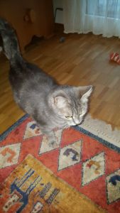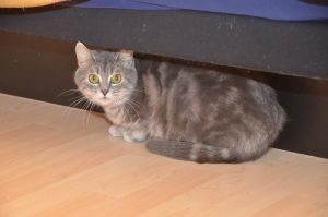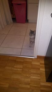Nun bin ich also schon 2½ Wochen in meinem neuen Zuhause. Die ersten Tage waren natürlich etwas schwierig, da ich mich noch gar nicht so gut auskannte. Daher habe ich mich oft in verschieden Ecken verkrochen und habe aus sicherer Distanz beobachtet, was da alles so läuft. Viele neue Geräusche musste ich kennenlernen. Am schnellsten habe ich mir natürlich eingeprägt, wo mein Futternapf für mich parat ist. In der Nacht bin ich dann jeweils auf Erkundungstour gegangen. Schliesslich muss ich ja wissen was es sonst noch alles gibt. Mutig wie ich bin, habe ich mich auch schon ins Schlafzimmer zu meinen Leuten getraut. Unter dem Bett kann man sich gut verstecken. Ich glaube ich dürfte auch auf die Bettdecke springen und dort schlafen. Das trau‘ ich mich aber noch nicht