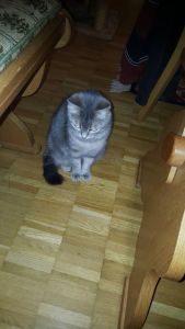 Als ich eintrat lag Silvie unter dem Stuhl vom Esstisch und schaute mich mit grossen Augen an. Sie wusste genau wer gekommen war und traute der Situation nicht. Sie hatte wohl angst, dass ihr erneut ein Umzug bevor stand und auch ihre Besitzerin meinte, dass die Kleine sich sonst nicht so verhält. Zwar entspannte sie sich mit der Zeit, doch behielt sie mich stets im Blick