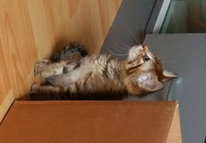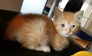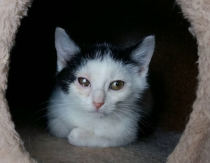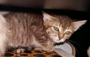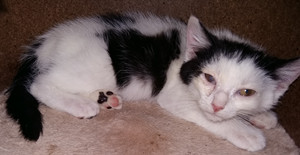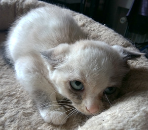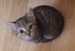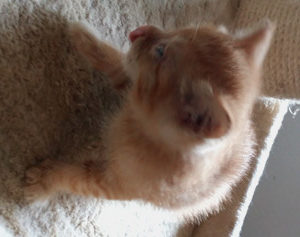 Er kuschelt stundenlang mit einem und dazu knabbert er gerne am Pullover, während natürlich auch bei ihm ständig das Motörchen rattert.