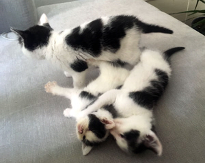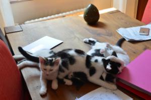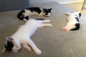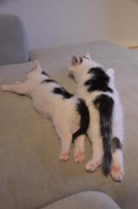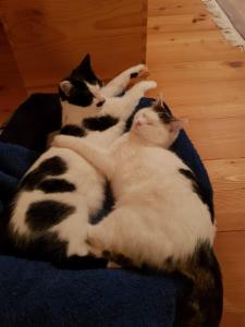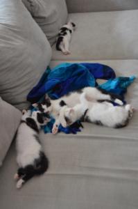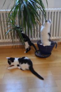 Naira geniesst das Zusammensein mit der Familie, sogar das Schlafzimmer ist nicht Tabu. Was gibt es schöneres als mit Liebe einzuschlafen und mit Liede wieder aufzuwachen? Wenn es Schlafenszeit wird ist Gruppenkuscheln angesagt. Wenn die Zeit noch reicht buddelt Letta ungestört noch schnell einen Blumentopf aus. Auch wenn die Töpfe ein No Go sind, will man es umso mehr und zur Verteidigung von Letta – sowas nennt man heutzutage Haus- oder Raum-Umgestaltung auf kätzisch
