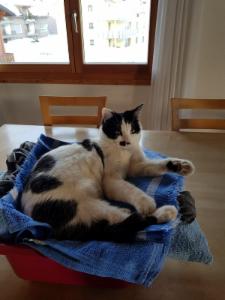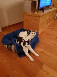 . Bella fand meine Tasche sehr interessant und schnüffelte diese ausgiebig ab. Bo kam kurz und liess sich streicheln, danach verzog er sich auf den grossen Kratzbaum