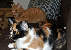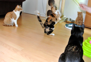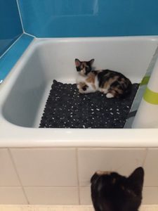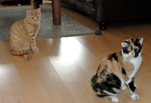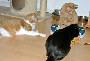 Inzwischen haben wir uns ganz gut eingelebt. Wir gehen alle brav aufs Katzenklo, fressen reichlich und genehmigen uns ab und zu ein bisschen von der leckeren Katzenmilch.
