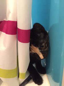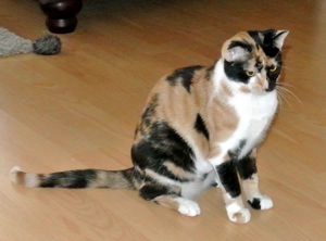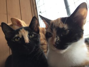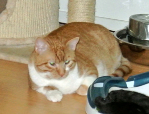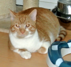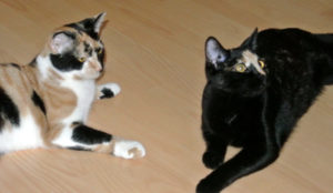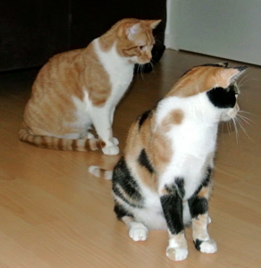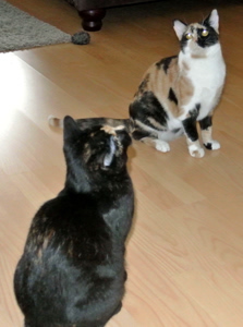 Cookie und Pie sassen auf der Treppe als ich kam. Donut kam sofort und flanierte um meine Beine und liess sich sofort streicheln. Nur Keks zeigte sich nicht gleich. Donut ist sehr anhänglich und kuschelt gerne