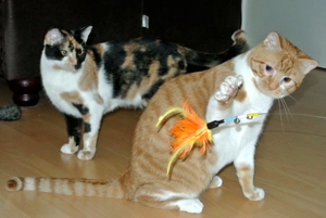 Unserer älterer Pflegebruder passt super auf uns auf und gibt uns ab und zu ein paar Tipps, wie das hier so läuft. Zum Beispiel darf man keine Möbel ankratzen. Wer hätte das gedacht? Naja, dann machen wir das halt nicht. Es gibt schliesslich ganz viele andere Kratzgelegenheiten und genug zum Spielen.