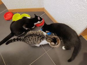 Jimmy und Leo haben ein richtiges Katzenparadies als neues zu Hause bekommen. Überall gibt es Kratzbäume und Klettermöglichkeiten. Sie dürfen durch das ganze Haus toben und lieben es sich gegenseitig die Holztreppe rauf und runter zu jagen. Die beiden sind voller Energie und werden von ihren neuen Besitzern mit Liebe und Aufmerksamkeit überschüttet. Das geniessen sie sichtlich