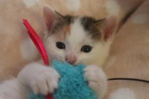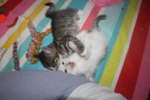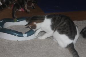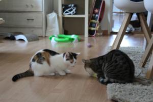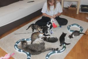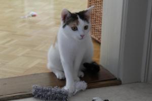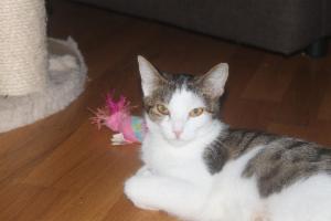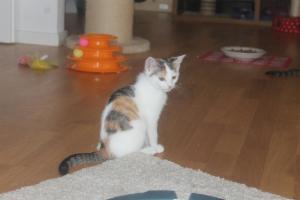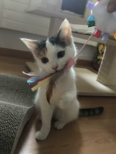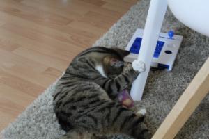Nach ein paar Minuten liess sie sich dann aber doch hervorlocken, allerdings steht sie nicht besonders auf Bälle. Sie mag jedoch den Laserpointer und die Spielangel und spielt sehr gerne damit, wenn es ihr gerade danach ist. Hauptsächlich abends geniesst sie Spiel- und auch Kuschelstunden
