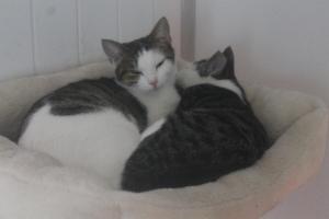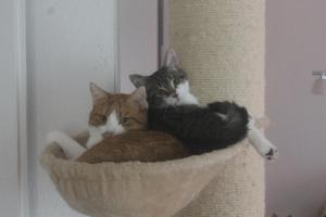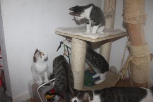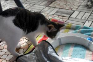 Mit ihrer Mitbewohnerin Mimi kommt sie, nach ein paar Anfangsschwierigkeiten, nun klar und sie verstehen sich gut. Mit Kater, der unter ihnen wohnen, gibt es leider hin und wieder Streit, weil der zur Zeit die Mädels ziemlich drangsaliert. Die beiden Gruppen haben sich aber inzwischen so arrangiert, dass die eine nur rausgeht, wenn die andere drinnen ist. Dinah liebt ihre Streifzüge draussen sehr. Die Besitzerin hat den beiden eine ganz tolle Wendeltreppe aussen vor dem Haus gebaut, wo sie durch das Badezimmer jederzeit rauskönnen.
