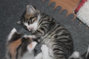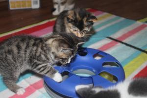 . Gegenüber den Jungs kann sie sich gut durchsetzen. Ihre Spielzeugbeute verteidigt sie mit lautem Knurren und Fauchen. Sie ist eine auch gute Jägerin.