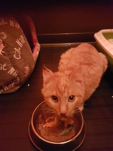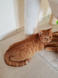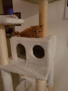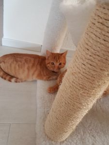 , deshalb haben wir angefangen, sie getrennt zu füttern. Fili hat gern den Überblick, sitzt gern oben an der Treppe oder zuoberst auf dem Kratzbaum, wo er alles gut sieht – dort fühlt er sich wohl.