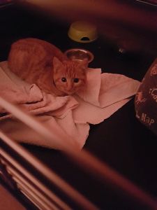 Bei uns läuft alles wie gewohnt ab, viel Spielen, Fressen und Schlafen. Doch am Abend wurden wir mit Futter in unser Zimmer gelockt und eingesperrt. Wir wissen nur nicht weshalb, denn wir haben doch nichts falsch gemacht