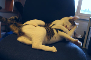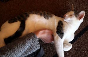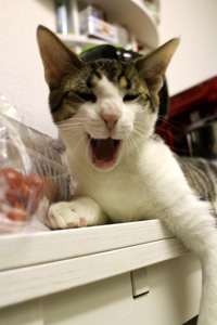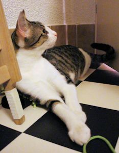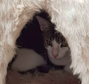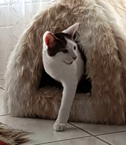 Ich werde immer anhänglicher, versteht mich nicht falsch, auf den Schoss springen oder so, das mach ich nicht. Aber ich begleite mein Pflegemami manchmal auf Schritt und Tritt, wenn sie in der Wohnung umher geht und wenn sie die Küche betritt, bin ich immer sofort zur Stelle! Ich bin auch schon in den Kühlschrank gesprungen