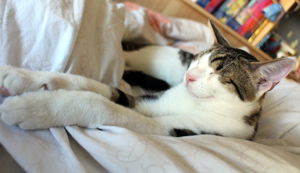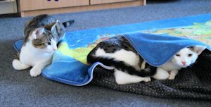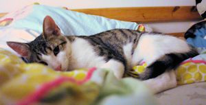 Wenn mein Pflegemami am Abend im Bett noch liest, krieche ich immer unter ihre Decke, dort fühle ich mich geborgen, nur kommt dann meist Natsu und will wieder spielen, denn er liebt Höhlen genauso wie ich!