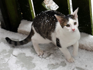 Der Schnee auf dem Balkon sorgte für Spass und auch der Wind, der draussen an allen Sachen zerrte, faszinierte die beiden Jungs. Einen erneuten Ausbruchsversuch von Laxus, der es wieder hinter das Netz schaffte und diesmal links die Balkonbrüstung entlanglief und nur mit Geduld und gutem Zureden den Weg wieder zurückkam, kostete uns ein letztes Mal Nerven
