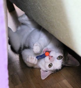 . Mit Natsu konnte ich schon spielen. Laxus versteckte sich dann im Gäste WC. Nun sitzen beide zusammen hinter dem Sofa. Essen wollen sie noch nicht, aber ich glaube, das wird sich ändern wenn der Hunger kommt